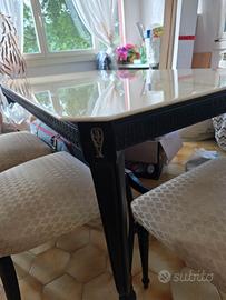 Tavolo con piano in marmo vero + base e 6 sedie (1