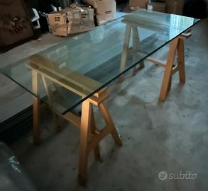 Tavolo con piano in vetro 2 cavalletti come da foto dimensioni: 160x70x75 h cm Regolabile in altezza