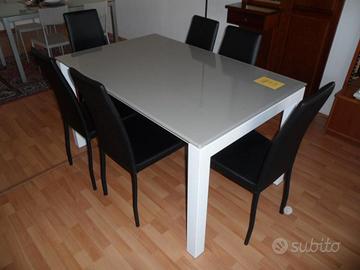 Art 40 Per rinnovo locali espositivi si propone tavolo rettangolare con struttura in metallo verniciato bianco e piano in cristallo temprato bianco.