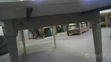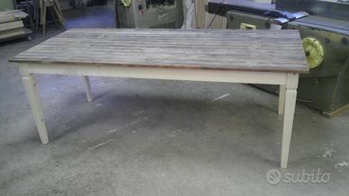 Tavolo costruito in abete bianco la scocca gambe e prolunghe invece la coperta su esigenze del cliente lo ha voluto in legno vecchio di antichi solai recuperati e restaurati con 2 prolunghe da 50 cm cadauna estraibili tramite sostegno in ferro a T. misure del tavolo 220 prof. 100 h 80 con 4 gamba a spillo con goletta. prolunga con incastrino nel fianco per infilare le prolunghe e semplici da togliere e da riporre in un angolo della casa. il mobile è già stato prodotto su esigenze e su commissione del cliente non teniamo magazzino ma essendo i diretti produttori abbiamo la possibilità di fare il tavolo uguale o di varie misure, essenze di qualsiasi genere in base alle proprie esigenze. il prezzo comprendente di imballo con finitura effetto grezzo sul piano e tinta noce medio sull'abete nuovo franco fabbrica iva non comprendente e nemmeno. siamo i diretti produttori falegnami. per noi conta dare vita al vostro sogno DIRETTAMENTE DAL PRODUTTORE. ASTENERSI RIVENDITORI E COMMERCIANTI