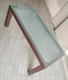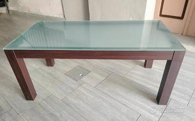 Tavolino Sala/Salotto Misure: 120x60 cm Altezza: 50 cm Materiale: base del tavolo di legno con piano in vetro spesso 1 cm. Piano di vetro è opaco non trasparente.