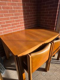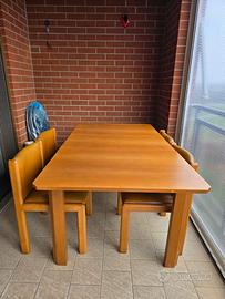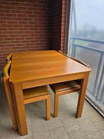 Tavolo legno massello chiuso 126x91 aperto 170x91 con 4 sedie in pelle con piccoli segni di usura nel piano vedere ultima foto