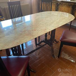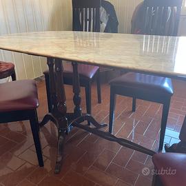 Si vende tavolo con ripiano in marmo rosa Portogallo completo di sei sedie in legno con seduta in pelle ( senza difetti o abrasioni alcune ) a € 750.