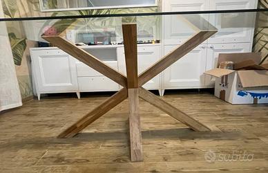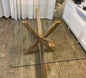 Tavolo moderno con ripiano in vetro e gambe in legno 160x90