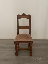 Tavolo in stile arte povera bassanese in legno mogano con 6 sedie abbinate. Misura 250x120