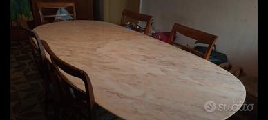 Tavolo con base in marmo, con 6 sedie, buffet e controbuffet, anch'esso, con base in marmo. Ritiro e spedizione a carico del cliente