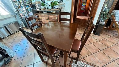 Tavolo noce cm 100x100 allungabile fino a 200 con 4 sedie in legno massello 180 euro