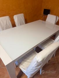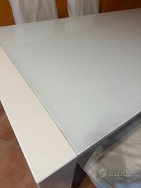 Vendo Tavolo allungabile (max 260 cm) bianco, vetro bianco cm. 180 x 90 x 75 compreso di 6 sedie in ecopelle e copri sedie. Zona ponte di nona. Terzo pianco con ascensore.