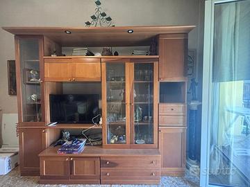 Camera da pranzo - tavolo e vetrina Dimensioni: - Tavolo 100 x 100 cm (allungabile, raddoppia le dimensioni) - Sedie 6 x lunghezza 39, larghezza 45, altezza 40 cm - Credenza: Lunghezza 244 cm, Larghezza 41 cm, Altezza 210cm