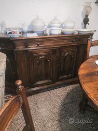 Tavolo, sedie e mobile salotto in legno massello. Mobile salotto cm 200 x55 Tavolo tondo 136cm+ sedie Ritiro a carico dell'acquirente Zona le Cure.