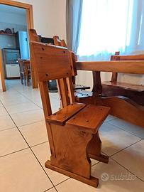 Tavolo con 4 sedie e panca ad angolo con contenitore.