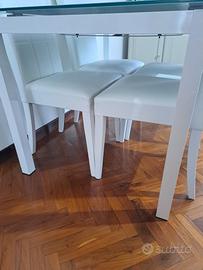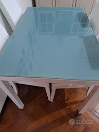 Vendo tavolo in vetro con struttura in ferro 120 x 80 allungabile fino ai 170 cm e 4 sedie, usato ma tenuto benissimo, l'unica cosa le sedie sono state graffiate dal gatto.