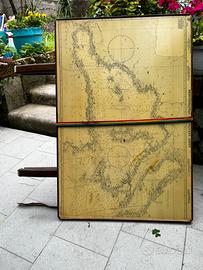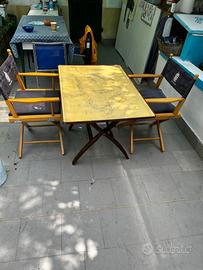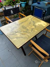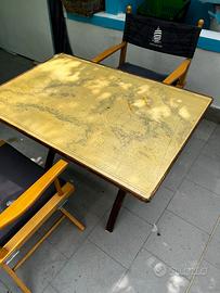 Tavolo pieghevole in legno con piano disegata carta nautica piu’due sedie regista pieghevole in legno da barca o giardino