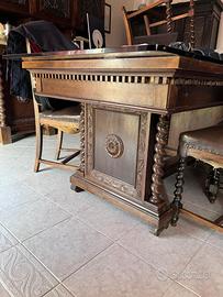Tavolo con n. 8 sedie di cui una da restaurare in arte povera.
