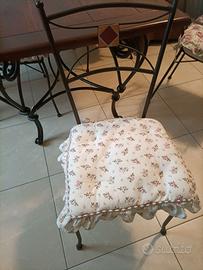 Tavolo in ferro battuto e legno massello in ottime condizioni con 6 sedie in ferro battuto,misura larghezza 90 cm e lunghezza 185 cm, altezza cm 78,5 cm, prezzo 3000€ trattabile no perditempo grazie