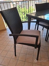 Vendo tavolo con 6 sedie in rattan e alluminio con vetro di protezione.