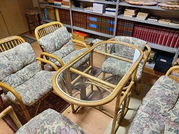 Vendo tavolo con divanetto e 4 sedie in vimini misura tavolo 110x60