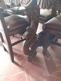 Tavolo intarsiato a mano misure 184x79 con n. 6 sedie legno con seduta in pelle. VENDO € 200