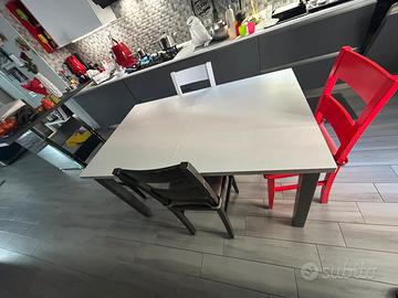 Causa cambio arredamento si vende tavolo con le relative 4 sedie. Parliamo di tavolo in legno massello allungabile fino a 3 metri con le allunghe. Le 4 sedie sono state verniciate in base all’abbibamento della nostra cucina e che ovviamente posso essere riverniciate in base al vostro abbinamento. Non dispongo di mezzi o chiavi per lo smontaggio che sarà a carico dell’acquirente. Sul prezzo non posso farci molto in quanto non è materiale Ikea o mondo convenienza.