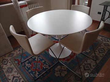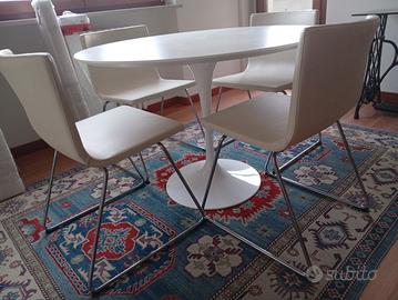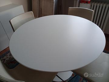 Causa trasloco vendo riedizione del tavolo Tulip di Saarinen (diametro 1m x 1m) in laminato bianco opaco con 4 sedie Ikea mod. lillanas. Ritiro a carico dell'acquirente entro fine Aprile 2026. condizioni buone.