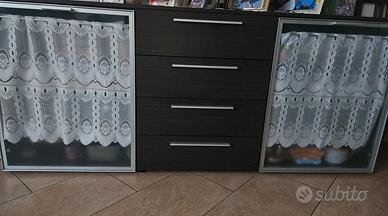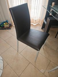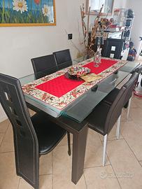 vendo tavolo rettangolare in vetro con parte centrale vetro satinato allungabile da 1.60 mt fino a 2.5 mt con 4 sedie in ecopelle testa di moro più 2 sedie moderne insieme vendo anche mobile salotto a due on vetro e la cassettiera compresa vendita anche separata TRATTABILE