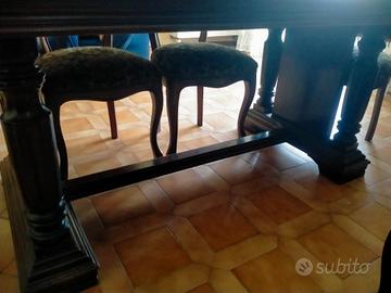 Tavolo in legno massello da salotto. lunghezza 192 cm . larghezza 92 cm. 6 sedie in stile Luigi Filippo con seduta in tessuto damascato. Vendibili anche singolarmente 6 sedie 100 €. tavolo 150 €