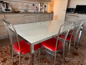 Vendo tavolo con 6 sedie. Usato ma ven tenuto, presenta naturalmente graffi superficiali.