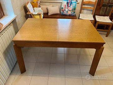Vendo tavolo da cicina con sedie per rinnovo cucina. Il tutto ancora in buono stato. Mobili di marca SCAVOLINI in legno massiccio. Le dimensioni del tavolo sono 80x130 con estensione fino a 170cm.