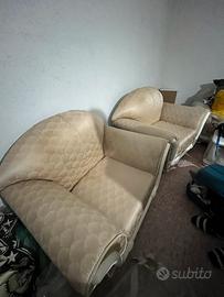 Tavolo con 6 sedie, 2 poltrone, 1 divano e 1 tavolino marca Corsini. Sedie in seta. Prezzo trattabile