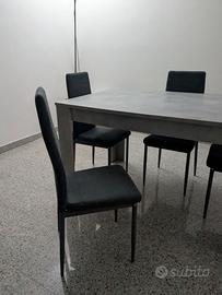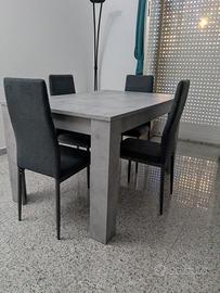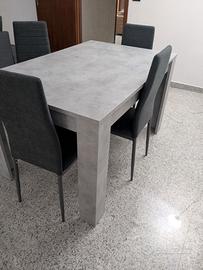 Vendo tavolo con 4 sedie in camoscio color cemento. Tavolo color cemento in perfette condizioni, usato una volta sola. Dimensioni del tavolo = lunghezza 140 x larghezza 90 x altezza 78.