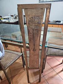 Tavolo 200×90 e sedie in ferro con vetro di cristallo con decorazione
