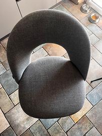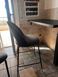 Tavolo con due sgabelli in tessuto grigio scuro, tutto pari al nuovo. Dimensioni tavolo: 120x60 cm, altezza regolabile Dimensioni sedie: altezza 65 cm, seduta 45x45 cm Per info contattatemi
