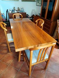 Per cambio abitazione, vendo tavolo salotto / sala da pranzo con quattro sedie coordinate. Legno massello, dimensioni H = 74 cm., L = 200 cm., P = 85 cm. Ritiro e trasporto a carico del compratore.