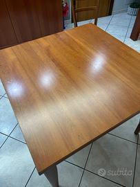 tavolo quadrato color ciliegio 1mx1m allungabile con apertura a portafoglio con sedie color ciliegio con seduta color blu