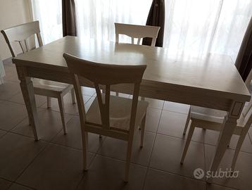 Tavolo bianco in legno misura 180x90 con 4 sedie in coordinato.