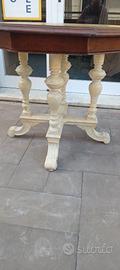 Tavolo antico restaurato ottogonale con stampa veliero.