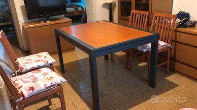 Vendo tavolo con telaio in ferro e piano in melanina. altezza 73 cm, lunghezza 123 cm da chiuso e 247 da aperto. Il tavolo risulta già smontato. Da ritirare a Milano in via Ippodromo.