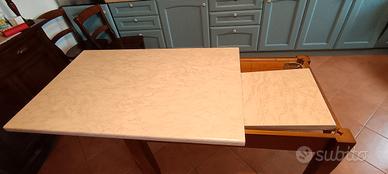 Tavolo apribile in buone condizioni con top in laminato,piedi a sciabola in noce. Misure Normale 120x75 Aperto 160x75