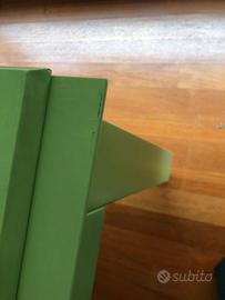 Tavolo in legno con vano contenitore. Due sedie diverse. Con qualche imperfezione ma in generale in buone condizioni.