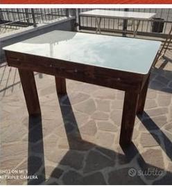 vendo tavolo in legno realizzato a mano con pallet,solido e sopra una lastra di vetro satinato facile da pulire in perfette condizioni ottimo per il giardino e grandi pic nic misure: 110 lunghezza 75 larghezza 71 altezza è possibile aggiungere dei piedini o delle ruote alla base delle gambe