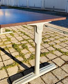 Vendo tavolo ideale per sala riunioni, ufficio o uso domestico. Il piano è in legno color noce scuro. Perfetto come scrivania da lavoro, tavolo per conferenze o tavolo da studio.