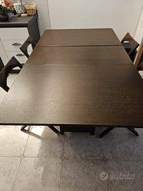 vendo tavolo da interno pighevole di Calligaris Serie Olivia in legno scuro. Dotato di 2 rotelline con freno per spostarlo con facilità + 2 sedie pieghevole quali si può contenere all'interno del tavolo.