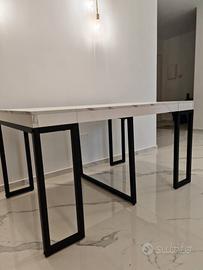 Console estensibile Glam - Estensibile da 45 a 235CM - Effetto marmo bianco con gambe in metallo.