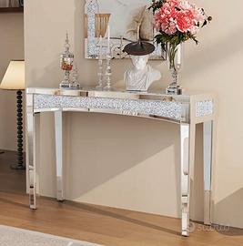 Tavolo da ingresso moderno in vetro argentato, nuovo imballato