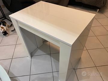 Vendo tavolo console in legno bianco lucido con 4 tavole per allungarlo. Estensibile fino a 253cm di lunghezza. Misure da chiuso: 54x78x78cm.
