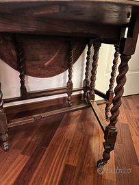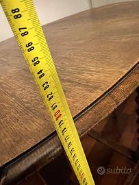Tavolo ovale di legno massello. Noce Misure chiuso: 105 X 47 Misure aperto: 105 X 133 Altezza 78 cm rotelle comprese Posso inviare altre foto su richiesta Non è stato lucidato No perditempo Ritiro in zona metro A ‘colli albani’
