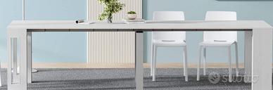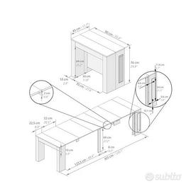 Tavolo Consolle Allungabile modello "Easy" con porta prolunghe, preso dal mobilificio online "Mobili Fiver" (made in Italy). Misure da 45cm (chiuso) a 305 cm (con tutte le prolunghe) di lunghezza x 90 cm di larghezza x 76 cm di altezza, colore Bianco Frassino. Acquistato a fine 2022 e pagato oltre 450 euro direttamente dal mobilificio. Vendo in quanto mai utilizzato con le prolunghe ma solo da tavolino da ingresso per appoggiare i vari accessori sotto la tv come da foto (i paracolpi presenti e visibili verranno ovviamente rimossi). Condizioni PARI AL NUOVO. Vendo montato e con tutte le prolunghe a 200 euro, consegna a mano a Pontinia. Aggiungo qualche foto prese direttamente dal sito del mobilificio per far comprendere il modello da chiuso/aperto e le relative misure.