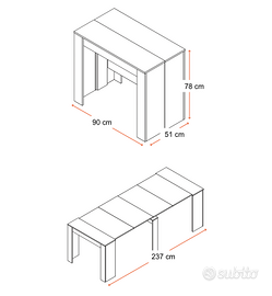 Da consolle a tavolata, grazie a 4 prolunghe per passare da una lunghezza iniziale di 51 cm fino a 237 cm e alle guide scorrevoli in metallo per l'apertura della consolle.