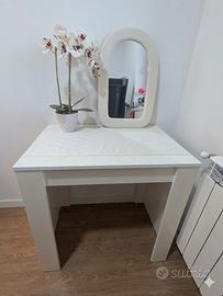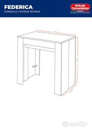 Per inutilizzo vendo tavolo consolle allungabile bianco/panna di mondo convenienza "Federica". Sono presenti 4 tavole che permettono di allungarlo. 1) Lunghezza tavolo chiuso: 78,4 cm. 2) Lunghezza tavolo aperto: 251,6 cm lunghezza.
