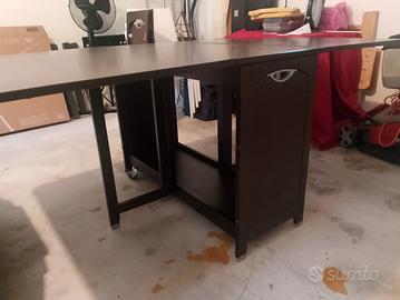 In vendita per inutilizzo tavolo consolle allungabile marca Calligaris, con ruote bloccabili e spazio interno per riporre oggetti/sedie pieghevoli. Senza sedie. In ottimo stato considerata l'etá dell'oggetto. Si sta seduti comodi in 6. Dimensioni da chiuso 100 lunghezza, 42 larghezza, 72 altezza. Da aperto la larghezza diventa di 170 cm. Non si spedisce.